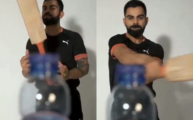 इस वीडियो में विराट को बाएं हाथ से शॉट खेलते हुए बोतल का कैप खोलते देखा जा सकता है.
