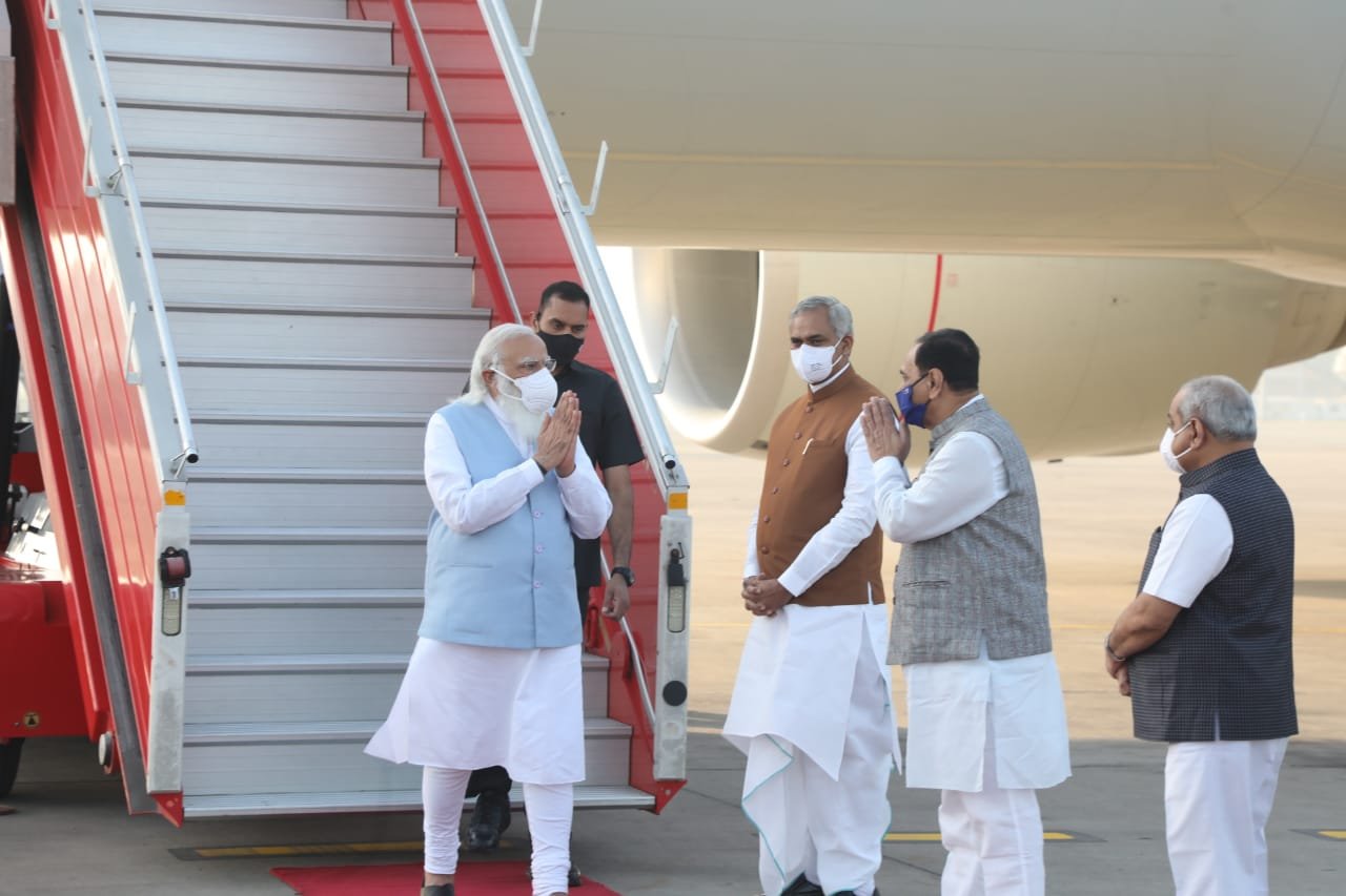 प्रधानमंत्री नरेद्र मोदी आज सुबह गुजरात की राजधानी अहमदाबाद पहुंचे हैं। वे यहां से फिर केवड़िया पहुंचे। पीएम मोदी आज जब अहमदाबाद के एयरपोर्ट पहुंचे तो यहां उन्हें गुजरात के राज्यपाल आचार्य देवव्रत, मुख्यमंत्री विजय रूपाणी, और डिप्टी सीएम नितिन पटेल ने रिसीव किया।