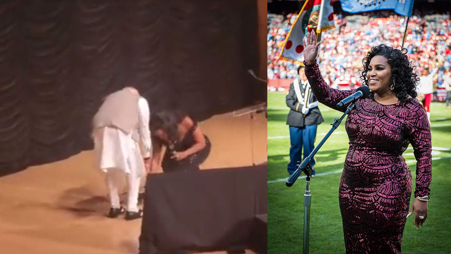‘जन गण मन’ गाने के बाद अमेरिकी सिंगर मैरी मिलबेन ने छुए PM मोदी के पैर, मंच पर लगे भारत माता की जय के नारे