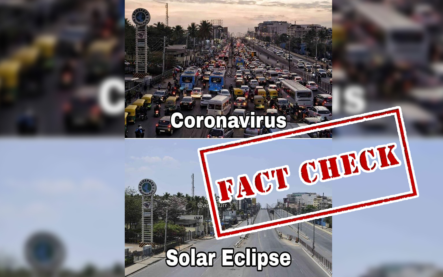 जाने COVID-19 लॉकडाउन और सूर्यग्रहण के दौरान ट्रैफिक की मात्रा को दर्शाती इस वायरल तस्वीर के पीछे का सच