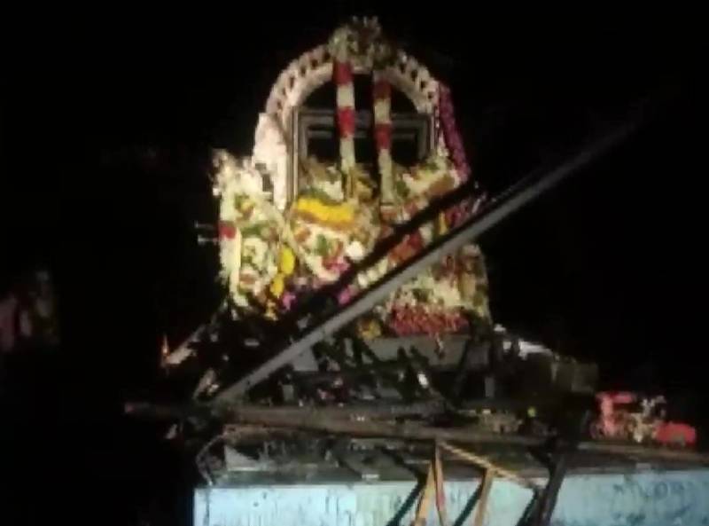 #WATCH तमिलनाडु: तंजावुर में वार्षिक रथ उत्सव के दौरान हाई वोल्टेज तार की चपेट में आने से कम से कम 10 लोगों की मौत हो गई है। pic.twitter.com/JTGLjjqi5v