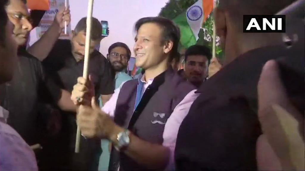 अभिनेता विवेक ऑबेरॉय, जिन्होंने अपनी बायोपिक ‘पीएम नरेंद्र मोदी’ में प्रधानमंत्री नरेंद्र मोदी के जीवन को परदे पर उतारा, ने शनिवार को दिल्ली के इंडिया गेट पर भाजपा के एक चुनाव कार्यक्रम में हिस्सा लिया.