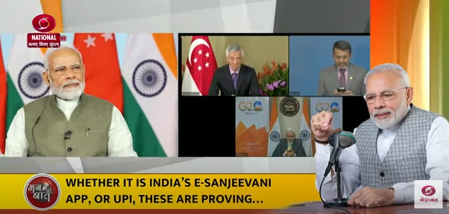 पीएम मोदी ने जनता के संबोधन में कहा कि देश के सामान्य मानवी के लिए, मध्यम वर्ग के लिए, पहाड़ी क्षेत्रों में रहने वालों के लिए ई-संजीवनी जीवन रक्षा करने वाला एप बन रहा है। ये भारत की डिजिटल क्रांति की शक्ति है। भारत के UPI की ताकत भी आप जानते ही हैं। दुनिया के कितने ही देश, इसकी तरफ आकर्षित हैं। कुछ दिन पहले ही भारत और सिंगापुर के बीच UPI-PAYNOW लिंक लॉन्च किया गया। अब सिंगापुर और भारत के लोग अपने मोबाईल फोन से उसी तरह पैसे स्थानांतरण कर रहे हैं जैसे वे अपने-अपने देश के अंदर है।