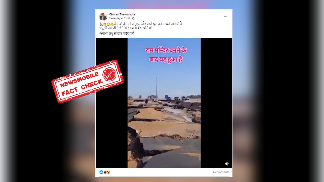 देश के कई राज्यों में इन दिनों मानसून की भारी बारिश हो रही है, ऐसे में कई राज्यों में बाढ़ व भारी तबाही का मंजर देखने को मिल रहा है। उत्तर पूर्वी राज्य असम में भी बाढ़ से भारी तबाही देखने को मिली है। उत्तराखंड, बिहार और उत्तर प्रदेश में भी बारिश के चलते कई जिले जलमग्न हो गए हैं। ऐसे में सोशल मीडिया पर एक वीडियो तेजी से शेयर किया जा रहा है। वीडियो एक टूटी हुई सड़क पानी में डूबी हुई नजर आरही है। इसी वीडियो को इंटरनेट पर वायरल कर दावा किया जा रहा है कि टूटी हुई यह सड़क उत्तर प्रदेश के अयोध्या की है जहां भारी बारिश के बाद नवनिर्मित सड़क का यह हाल हो गया।