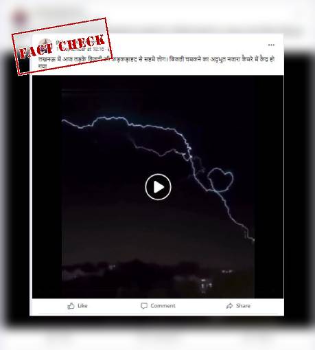 फेसबुक पर वायरल वीडियो शेयर कर हिंदी भाषा के कैप्शन में लिखा गया है कि, “लखनऊ में आज तड़के बिजली की कड़कड़ाहट से सहमे लोग। बिजली चमकने का अद्भुत नजारा कैमरे में कैद हो गया”