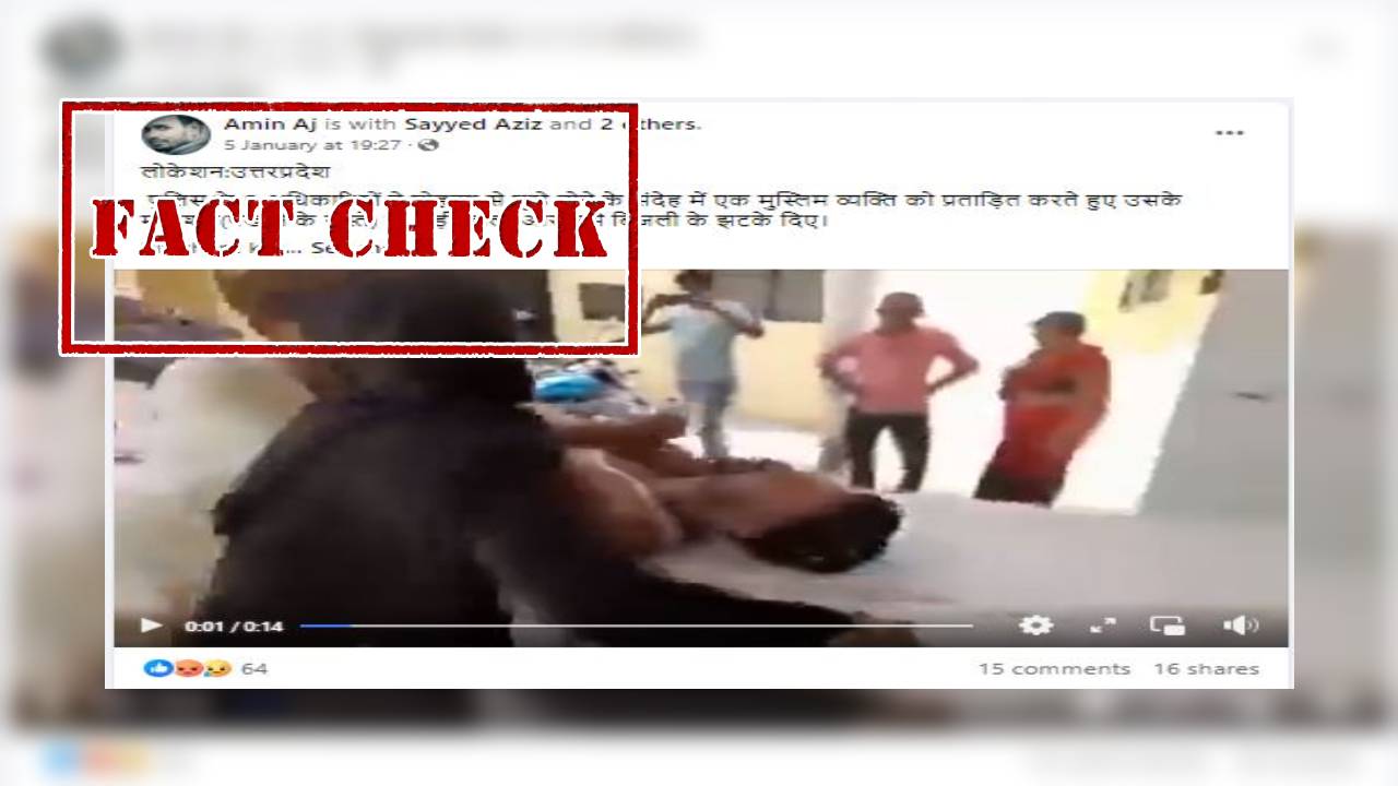 फेसबुक पर वायरल वीडियो शेयर कर हिंदी भाषा के कैप्शन में लिखा गया है कि “लोकेशन:उत्तरप्रदेश पुलिस के 5 अधिकारियों ने गोहत्या से जुड़े होने के संदेह में एक मुस्लिम व्यक्ति को प्रताड़ित करते हुए उसके मलाशय(पखाने के रास्ते) में छड़ी डाली और उसे बिजली के झटके दिए।”