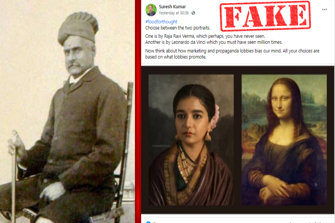 सोशल मीडिया पर दो तस्वीरें वायरल हो रही हैं। एक है मोना लिसा की तस्वीर, जो यूरोपीय चित्रकार लियोनार्डो डि विंची द्वारा बनाई गई एक प्रसिद्ध पेंटिंग है, और दूसरी तस्वीर को इस दावे के साथ साझा किया जाता है कि यह प्रशंसित भारतीय चित्रकार, राजा रवि वर्मा द्वारा बनाई गई छवि है।