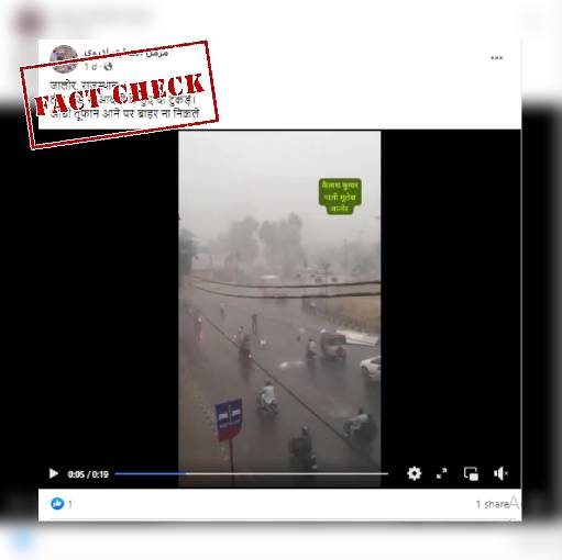 इसी को लेकर एक वीडियो सोशल मीडिया पर वायरल हो रहा है। वीडियो को शेयर कर दावा किया गया है कि राजस्थान में इस चक्रवात के चलते एक बाइक वाले पर बोर्ड गिर गया जिससे वह घायल हो गया। फेसबुक यूजर लिखते हैं कि ‘जालोर, राजस्थान, टीन शेड से आदमी के हुए दो टुकड़े, आंधी तूफान आने पर बाहर ना निकले’ .