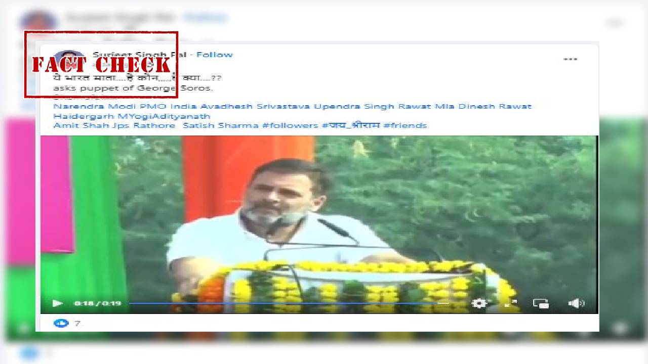 फेसबुक पर वायरल वीडियो शेयर कर कैप्शन में लिखा गया है कि “ ये भारत माता….है कौन,,,,,है क्या….?? asks puppet of George Soros. Shameful…..