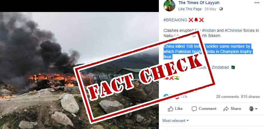 सर्कुलेशन में इस तरह के एक पोस्ट पर दावा किया गया है कि सिक्किम में चीन द्वारा 158 भारतीय सैनिकों को मार दिया गया था।
