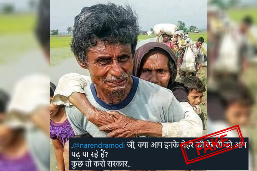 अलग-अलग सोशल मीडिया साइट्स पर एक वृद्ध महिला को अपनी पीठ पर बिठाकर ले जाने वाले व्यक्ति की फोटो फॉरवर्ड की जा रही है। पोस्ट की कैप्शन में कहा गया है कि, “मोदी जी, क्या आप इनके चेहरे की बेबसी को आप पढ़ पा रहे हैं? कुछ तो करो सरकार..”