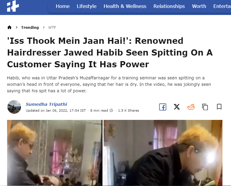 फैक्ट चेक: प्रसिद्ध हेयर ड्रेसर जावेद हबीब द्वारा महिला के सिर पर थूकने का यह वीडियो हालिया दिनों का नहीं, जानें पूरा सच