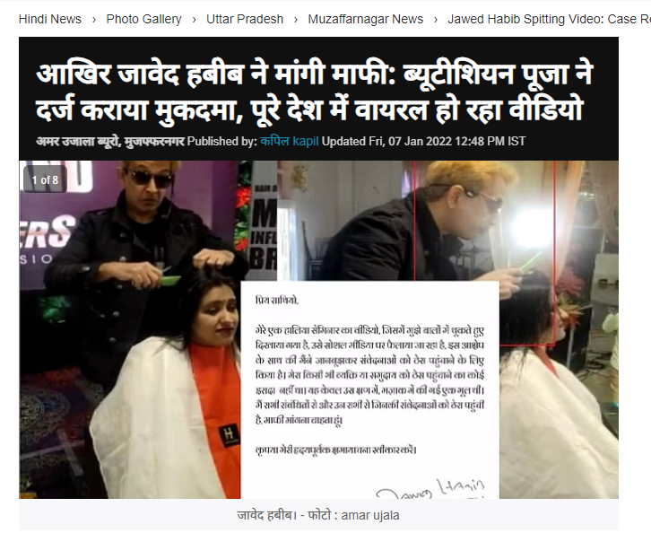 उपरोक्त प्राप्त लेख के मुताबिक वायरल वीडियो के चलते साल 2022 में ही महिला ब्यूटीशियन की तहरीर पर मंसुरपुर थाने में हेयर स्टाइलिस्ट जावेद हबीब के खिलाफ महामारी अधिनियम और आपदा अधिनियम की धाराओं में मुकदमा दर्ज किया गया था। इसके साथ ही लेख में बताया गया है कि हेयर स्टाइलिस्ट जावेद हबीब ने वीडियो के वायरल होने के बाद अपने इस कृत के लिए सोशल मीडिया पर माफ़ी भी मांगी थी।