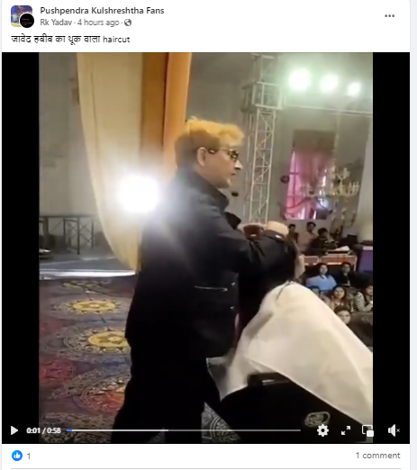 इसी वीडियो को सोशल मीडिया पर हालिया दिनों में शेयर कर हिंदी भाषा के कैप्शन में लिखा गया है कि “जावेद हबीब का थूक वाला haircut Azizen”