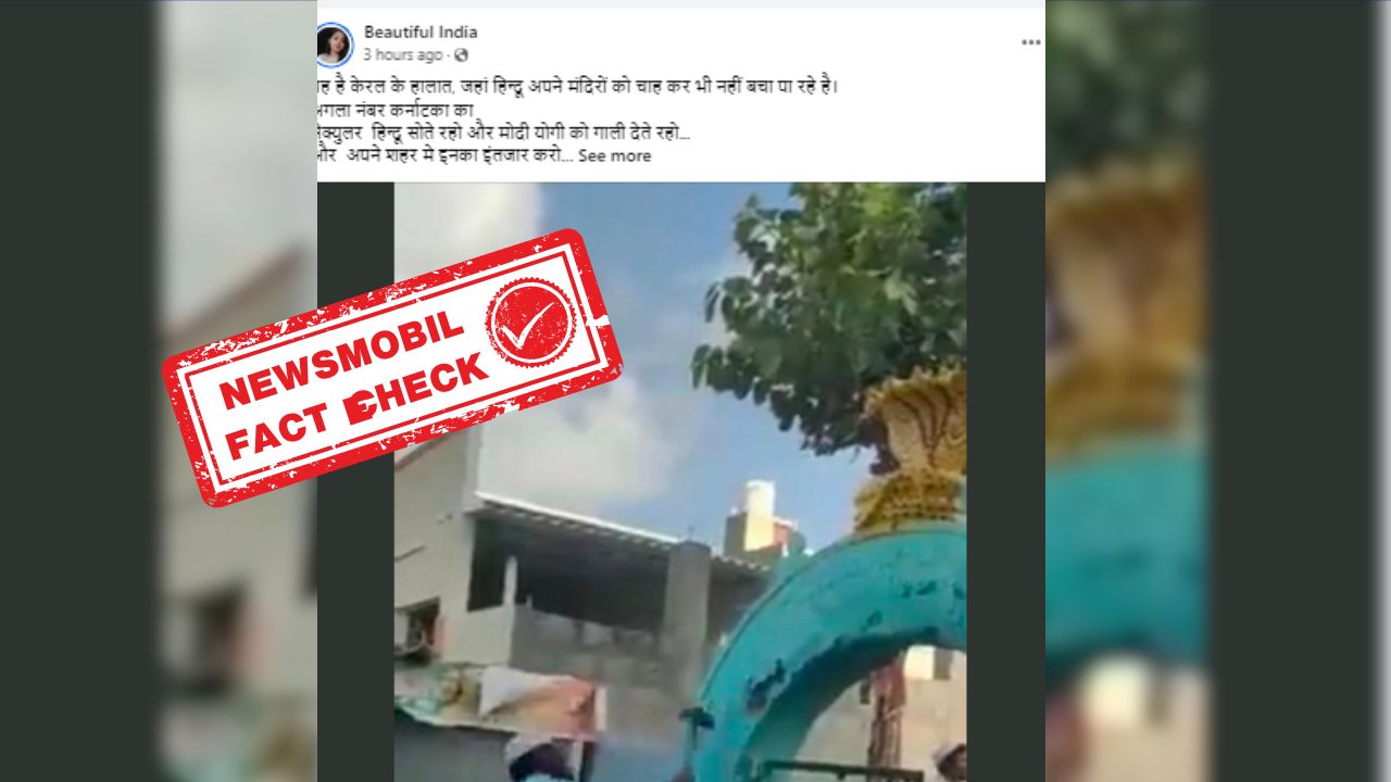सोशल मीडिया पर एक वीडियो तेजी से वायरल हो रहा है, वीडियो में कुछ समुदाय विशेष के लोगों को एक कथित मंदिर की दीवार तोड़ते हुए देखा जा सकता है। इसी वीडियो को सोशल मीडिया पर हालिया दिनों में शेयर कर दावा किया जा रहा है केरल में हालिया दिनों में एक मंदिर की दीवार को समादाय विशेष के लोगों द्वारा तोड़ा जा रहा है। वीडियो को फेसबुक पर शेयर कर हिंदी भाषा के कैप्शन में लिखा गया है कि “ यह है केरल के हालात, जहां हिन्दू अपने मंदिरों को चाह कर भी नहीं बचा पा रहे है। अगला नंबर कर्नाटका का सेक्युलर हिन्दू सोते रहो और मोदी योगी को गाली देते रहो…और अपने शहर मे इनका इंतजार करो ”