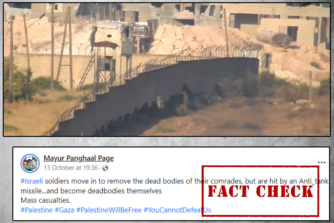 एक फेसबुक यूजर ने इसे शेयर करते हुए लिखा, “#इजरायली सैनिक अपने साथियों के शवों को निकालने के लिए आगे बढ़ते हैं, लेकिन एक एंटी_टैंक मिसाइल की चपेट में आ जाते हैं… और खुद शव बन जाते हैं बड़े पैमाने पर जनहानि.#फिलिस्तीन #गाजा.”