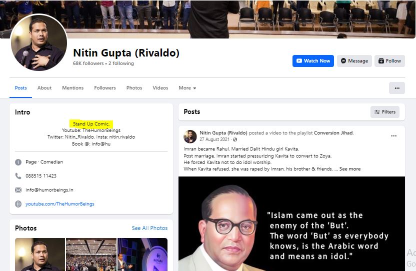 इसके बाद हमने यह जानने का प्रयास किया कि वायरल वीडियो में दिख रहे शख्स क्या असम के मंत्री हैं। इसकी सच्चाई जानने के लिए हमने Nitin Gupta की प्राप्त फेसबुक प्रोफाइल को खंगाला शुरू किया। इस दौरान हमने जाना कि नितिन गुप्ता एक स्टैंडअप कमेडियन है।