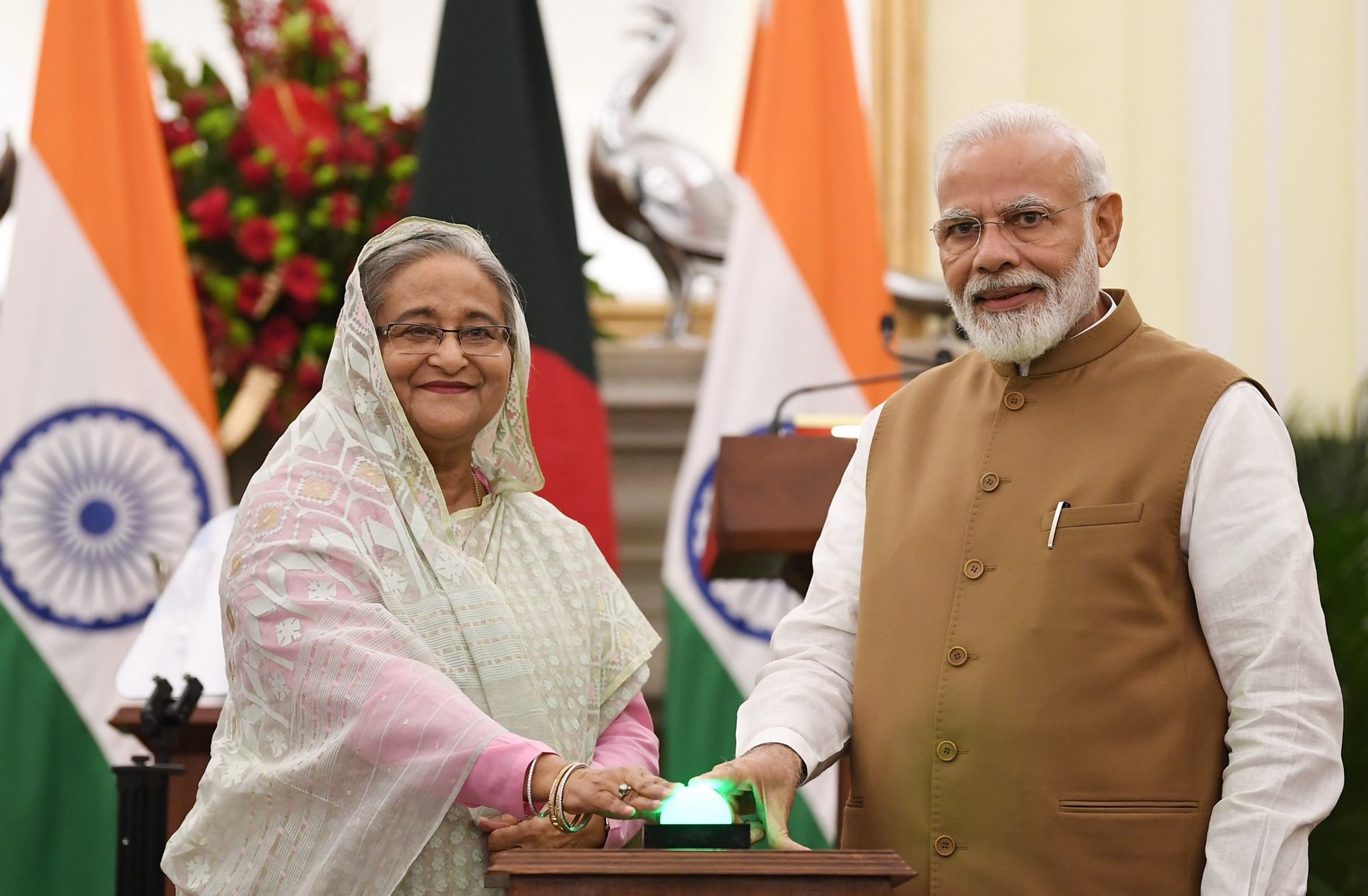प्रधानमंत्री मोदी ने कहा कि दोनों देशों का उद्देश्य अपने लोगों के जीवन को बेहतर बनाना है और यही “हमारी दोस्ती का आधार” है. शेख हसीना के साथ पीएम मोदी ने तीन परियोजनाओं का उद्घाटन किया, जिनमें एक उत्तर पूर्व में एलपीजी की सीमा पार आपूर्ति के लिए भी शामिल है। बांग्लासदेश की प्रधानमंत्री शेख हसीना भारत की चार दिवसीय यात्रा पर गुरुवार (3 अक्टूबर) को भारतीय राजधानी पहुंची थी.