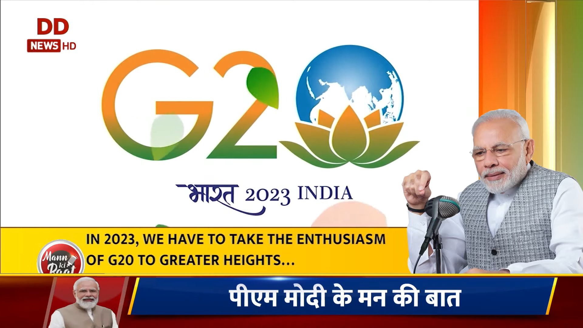 आज 25 दिसंबर यानी साल के आखिरी रविवार को पीएम मोदी ने मन की बात कार्यक्रम को संबोधित कर रहे हैं। सुबह 11 बजे पीएम मोदी ने मन की बात कार्यक्रम के 96वें एपिसोड को संबोधित करना शुरू किया। अपने संबोधन के दौरान पीएम मोदी ने कहा कि आज़ादी के 75 वर्ष के इस अभियान में पूरा देश तिरंगामय हो गया। 6 करोड़ से ज़्यादा लोगों ने तिरंगे के साथ सेल्फी भी भेजी। इस साल भारत को G20 समूह की अध्यक्षता की ज़िम्मेदारी भी मिली है। साल 2023 को G20 के उत्साह को नई ऊंचाई पर लेकर जाना है।