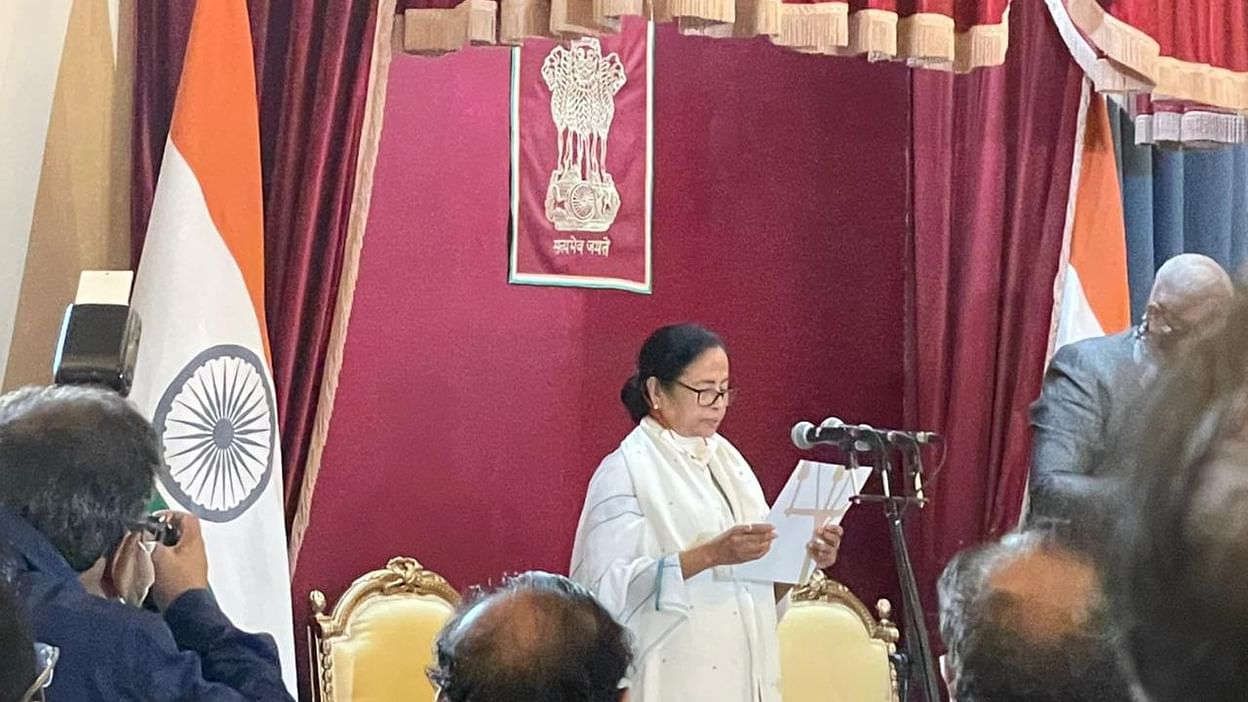 पश्चिम बंगाल विधानसभा चुनाव में हैट्रिक जीत दर्ज करने वालीं टीएमसी की मुखिया ममता बनर्जी आज एक बार फिर से राज्य की मुख्यमंत्री बन गई हैं। ममता बनर्जी ने पश्चिम बंगाल की मुख्यमंत्री के तौर पर आज यानी बुधवार को लगातार तीसरी बार राजभवन में शपथ ग्रहण किया। राज्यपाल जगदीप धनखड़ ने ममता बनर्जी को राज्यभवन में मुख्यमंत्री पद और गोपनीयता की शपथ दिलाई। कोरोना संकट और नियमो को देखते हुए शपथ ग्रहण समारोह के लिए पश्चिम बंगाल के पूर्व मुख्यमंत्री बुद्धदेव भट्टाचार्य, निवर्तमान सदन के नेता प्रतिपक्ष अब्दुल मन्नान और माकपा के वरिष्ठ नेता बिमान बोस को कार्यक्रम का निमंत्रण भेजा गया था।