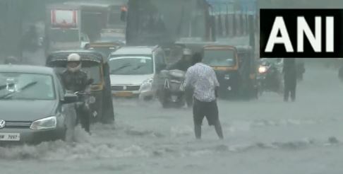 #WATCH मुंबई में भारी बारिश के कारण शहर के कई इलाकों में जलभराव हुआ।