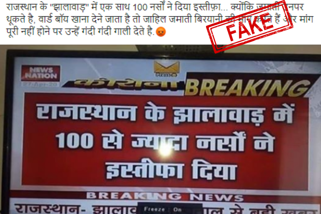 फैक्ट चेक: क्या जमातियों से तंग होकर 100 नर्सो ने राजस्थान में दिया इस्तीफा ? जानिए सच