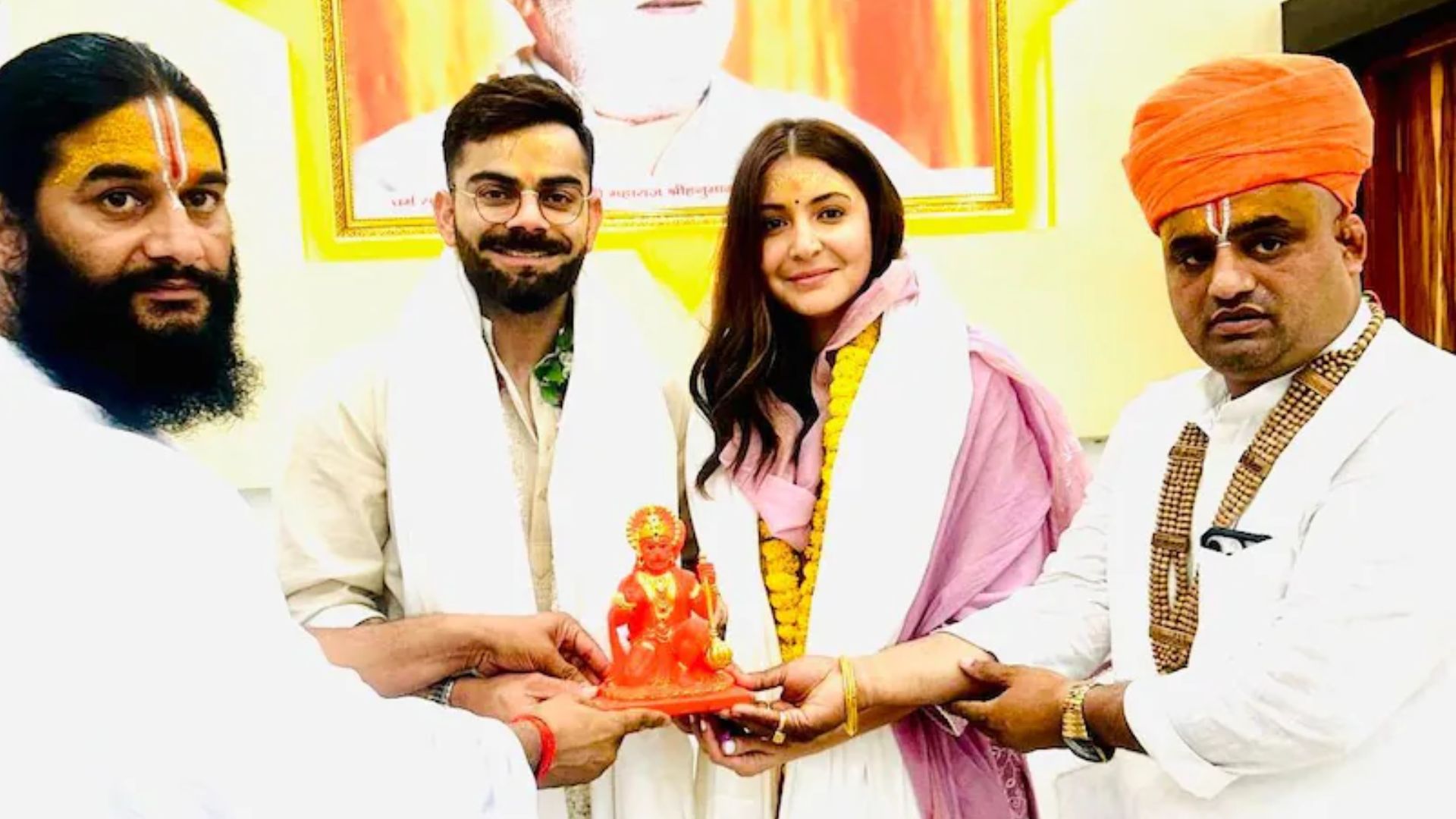हनुमान गढ़ी मंदिर में पूजा करते हुए विराट और अनुष्का का वीडियो भी सामने आया है, जिसमें पुजारी उन्हें फूलों की माला पहनाते और माथे पर तिलक लगाते नजर आए। पुजारी संजय दास जी महाराज ने बताया कि विराट और अनुष्का को सनातन धर्म, संस्कृति और अध्यात्म से गहरा लगाव है। उन्होंने मंदिर में रामलला की परिक्रमा की और भगवान हनुमान से आशीर्वाद भी लिया। पुजारी के मुताबिक, दोनों ने धार्मिक और पौराणिक विषयों पर भी चर्चा की।