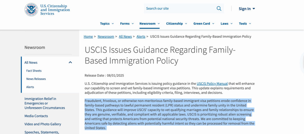 यूएससीआईएस ने स्पष्ट किया है कि परिवार-आधारित याचिका को मंज़ूरी मिलने से लाभार्थी स्वतः ही निर्वासन से सुरक्षित नहीं हो जाता.