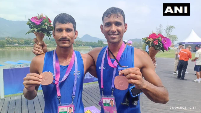 हांग्जो एशियन गेम्स: भारतीय रोवर अर्जुन लाल और अरविंद सिंह ने पुरुषों की लाइटवेट डबल स्कल्स में 6.28.18 के समय के साथ रजत पदक जीता।