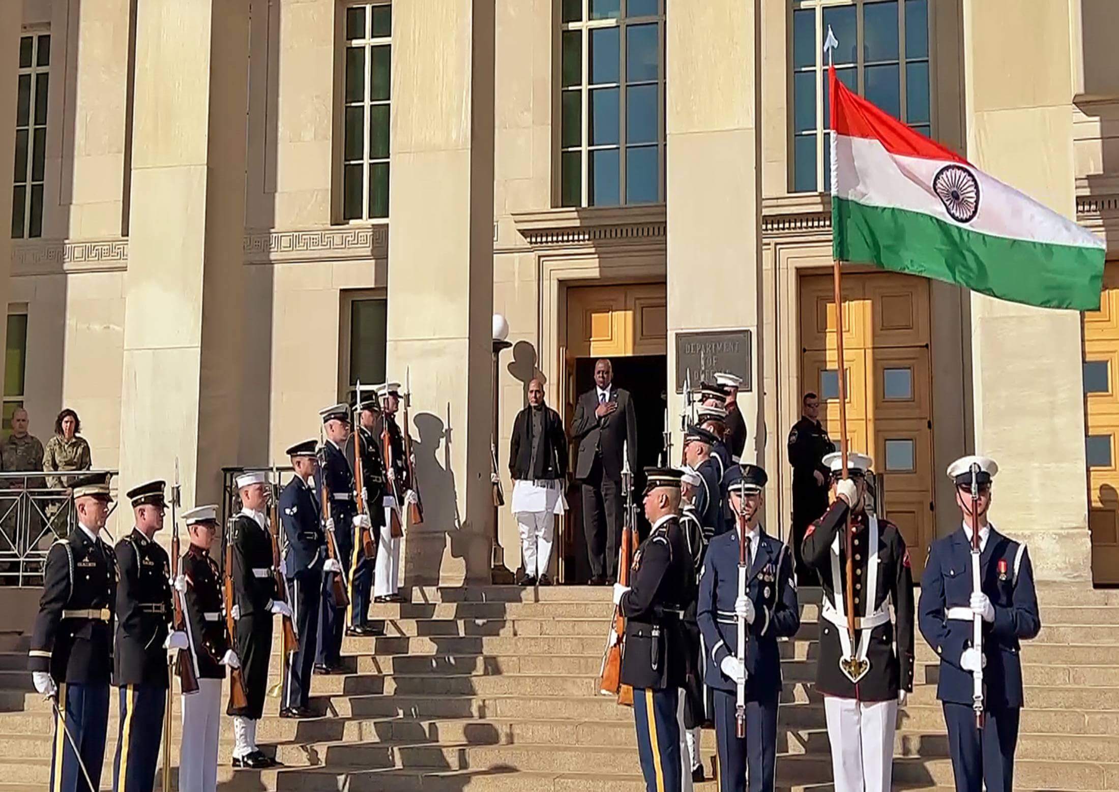 भारत-अमेरिका 2+ 2 संवाद: रक्षा मंत्री राजनाथ सिंह ने पेंटागन में गार्ड ऑफ ऑनर किया प्राप्त