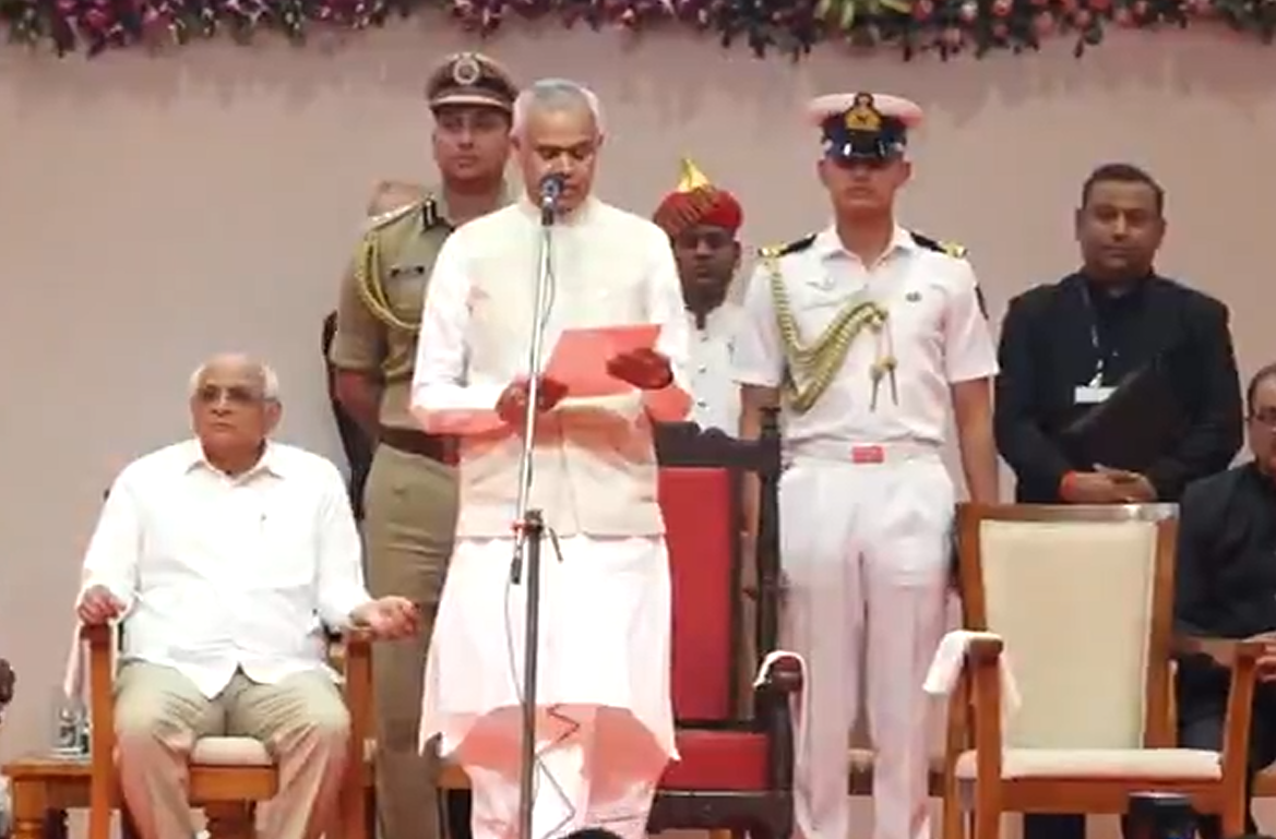 #WATCH | Gandhinagar | Harsh Sanghavi takes oath as Deputy Chief Minister of Gujarat pic.twitter.com/rJ5fYP4utC
