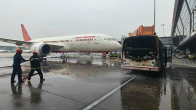 दिल्ली एयरपोर्ट पर आग का गोला बनी एअर इंडिया की बस, सामने आया वीडियो