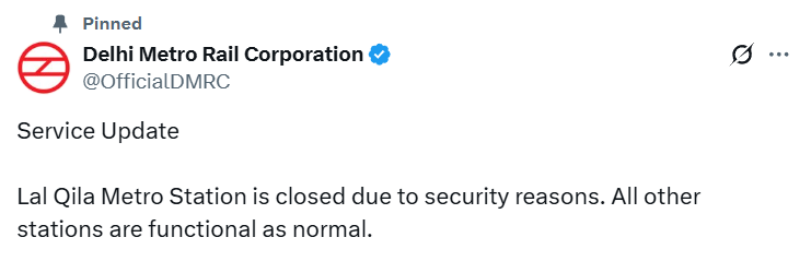 धमाके के बाद एहतियातन लाल किला मेट्रो स्टेशन को मंगलवार से पूर्ण रूप से बंद कर दिया गया है.