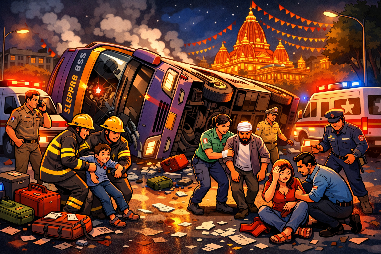 पुलिस के अनुसार, बस Jaipur से दिल्ली आ रही थी और रात करीब 1 बजे Jhandewalan Temple के पास हादसे का शिकार हो गई। बस में करीब 25 यात्री सवार थे।