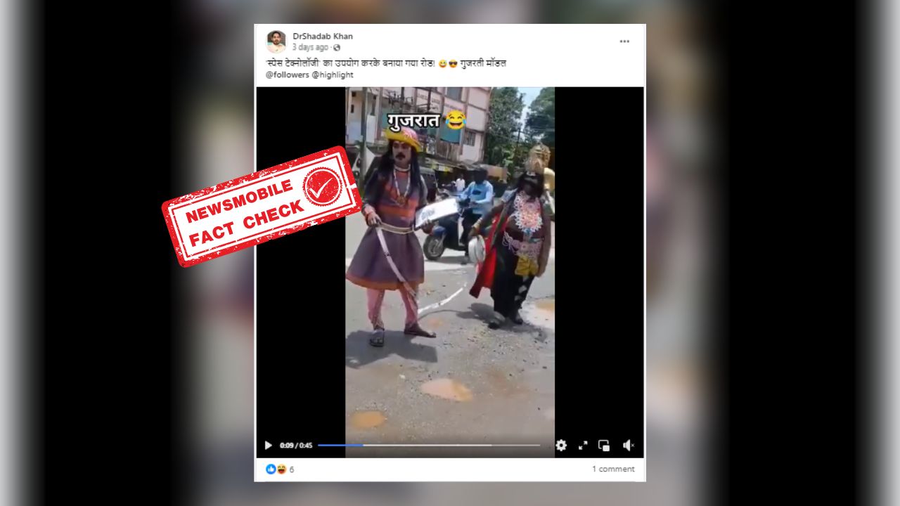 सोशल मीडिया पर एक वीडियो तेजी से वायरल हो रहा है जिसमें कुछ लोगों को चित्रगुप्त और यमराज के भेष में एक टूटी-फूटी सड़क पर बने हुए गड्ढों की नाप लेते हुए देखा सकता है। इसी वीडियो को सोशल मीडिया पर शेयर कर दावा किया जा रहा है कि टूटी हुई सड़क का यह वीडियो गुजरात का है।