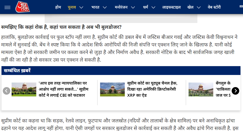 उपरोक्त प्राप्त जानकारी से हमने जाना कि गुजरात के सोमनाथ जिले में हुई बुलडोज़र कार्रवाई सरकारी जमीनों पर बनी अवैध संपत्ति पर की गयी थी। इसके बाद हमने गूगल पर यह जानने के लिए खोजना शुरू किया कि सुप्रीम कोर्ट ने बुलडोजर कार्रवाई को लेकर क्या आदेश दिए थे।