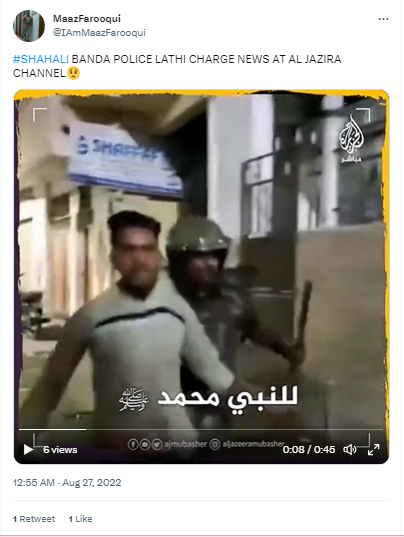 खोज के दौरान हमें सबसे पहले वायरल वीडियो से मेल खाती एक क्लिप MaazFarooqui नामक ट्विटर हैंडल द्वारा किए गए एक ट्वीट में मिली, जिसे अगस्त 27, 2022 अपलोड किया गया था। प्राप्त ट्वीट के दिए गए कैप्शन में जानकारी दी गयी थी कि यह वीडियो पुलिस की Shalibanda पुलिस के लाठी चार्ज है।