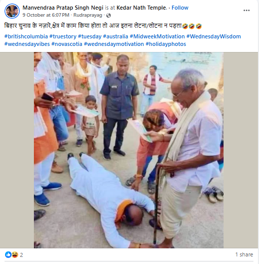 फैक्ट चेक: आम जनता के पैरो पर गिरते हुए नेता की यह तस्वीर बिहार चुनावों से सम्बंधित नहीं, जानें पूरा सच