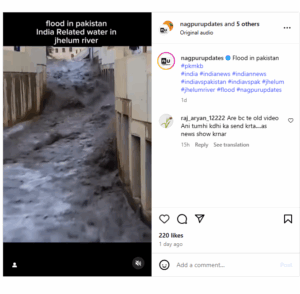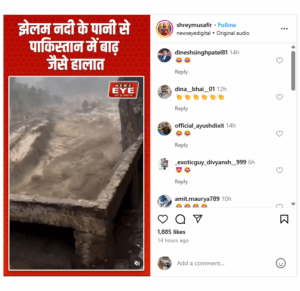 सोशल मीडिया पर एक वीडियो तेजी से वायरल हो रहा है जिसके कैप्शन में लिखा है, “झेलम नदी के पानी से पाकिस्तान में बाढ़ जैसे हालात”. Instagram यह वीडियो अप्रैल 29, 2025 का बताया जा रहा है.