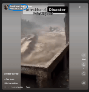 इस पोस्ट में वीडियो देखने के बाद हमे यह यकीन हुआ की यह वायरल वीडियो अप्रैल 29, 2025 का नहीं है बल्कि पुराना वीडियो है जिसे भ्रामक तरीके से वायरल किया जा रहा है. फिर हमने सोशल मीडिया पर इस वीडियो को और भी बारीखी से खोजा. हमने वीडियो की क्लिप को अलग अलग भाग में तोड़ा तो हमारे हाथ एक और सबूत लगा जो हूबहू इस वीडियो से मेल खाता था. हमें Facebook पर एक पोस्ट मिला जिसमें यह वीडियो जुलाई 29, 2024 को पोस्ट किया गया था.