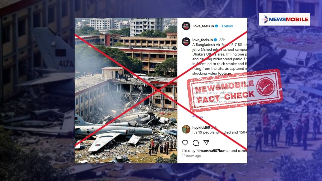 सोमवार, 21 जुलाई को उड़ान भरने के कुछ ही देर बाद बांग्लादेश वायु सेना का एक F-7 BGI जेट विमान जो चीन द्वारा निर्मित था, ढाका में एक स्कूल की इमारत से टकरा गया, जिसमें कम से कम 27 लोगों की मौत हो गई और कई अन्य घायल हो गए. दुर्घटना के कुछ ही देर बाद, सोशल मीडिया पर एक तस्वीर वायरल होने लगी, जिसमें इमारत में खड़े एक विमान से धुआं निकलता हुआ दिखाई दे रहा है. इस तस्वीर को बांग्लादेश में हुई हालिया त्रासदी से जोड़ा जा रहा है.