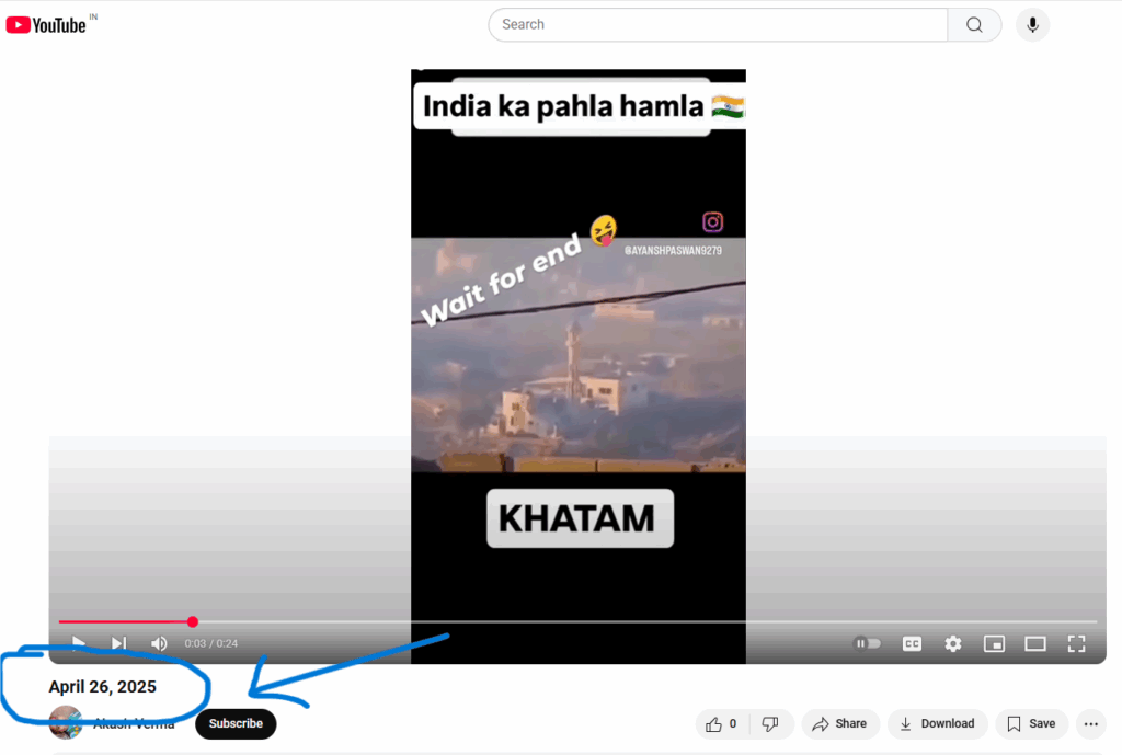 खोज के दौरान मिले तथ्यों से हमने यह जाना कि यह वायरल वीडियो अप्रैल 26, 2025 का नहीं बल्कि सन 2024 का है, जिसे हालिया दिनों में भ्रामक दावे के साथ शेयर किया जा रहा है.