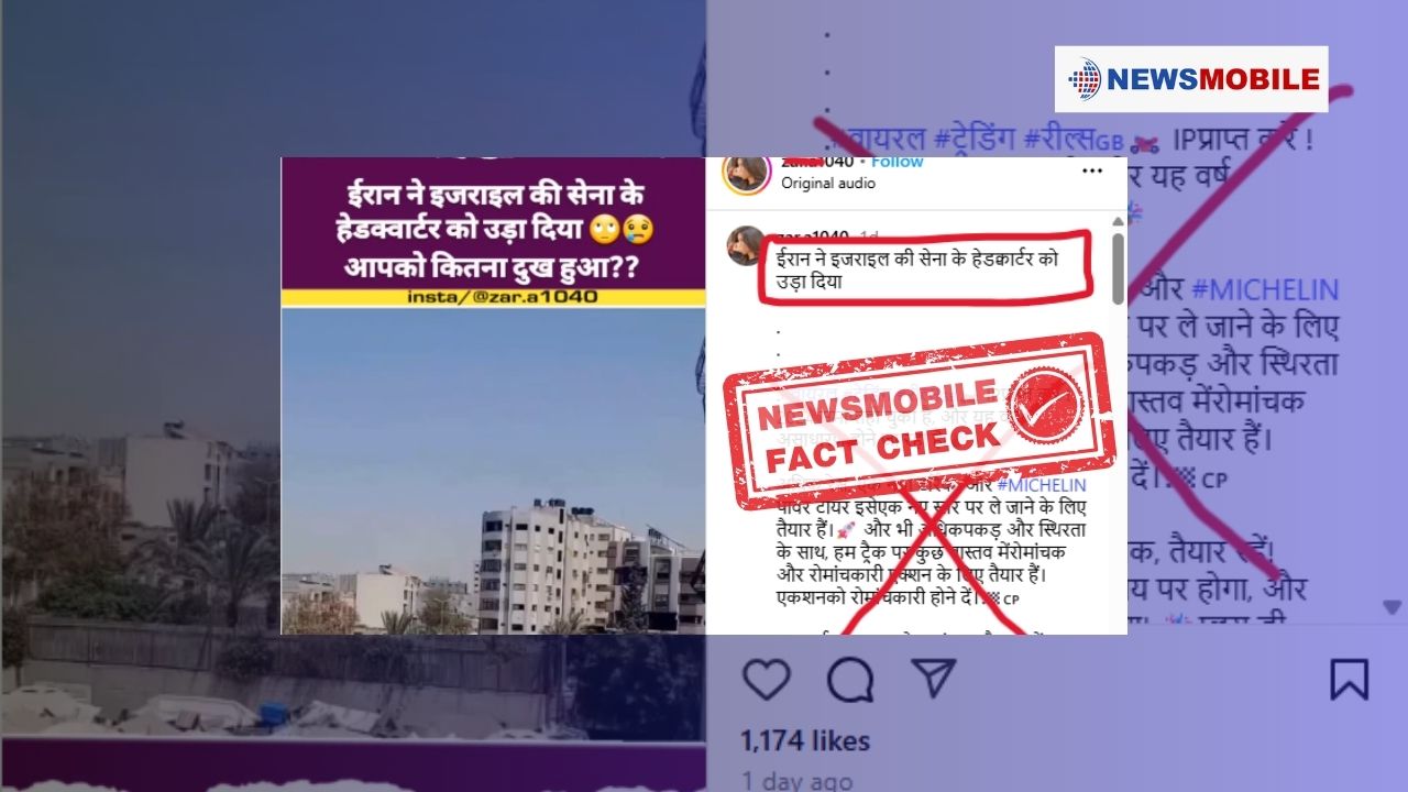 Instagram पर यूजर ने वीडियो वायरल करते हुए दावा किया कि यह वीडियो ईरान द्वारा इजरायल पर हुए हमले का है. वीडियो के कैप्शन में लिखा है “ईरान ने इजरायल की सेना के हेडक्वार्टर को उड़ा दिया” यह वीडियो सोशल मीडिया पर जून 17, 2025 को पोस्ट किया गया है.