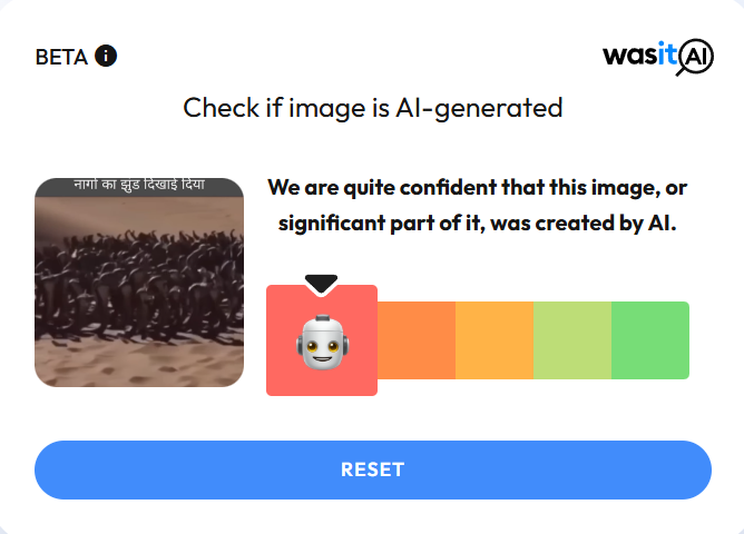 इसके बाद हमने अपने शक को यकीन में बदलने के लिए Was It AI नामक AI डिटेक्शन टूल का उपयोग गिया जिसमें हमने जाना कि यह वीडियो AI Generated है.