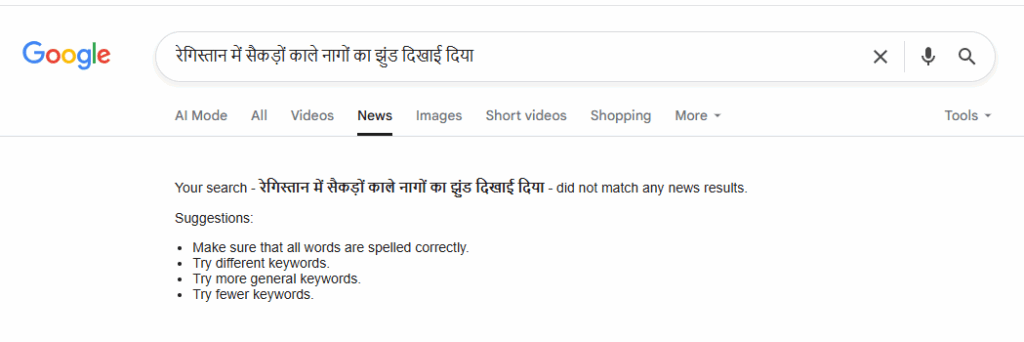 सबसे पहले, हमने यह जानने के लिए कि क्या वाकई इस तहर की कोई घटना हुई है, प्रासंगिक कीवर्ड खोजे, लेकिन इस दावे को साबित करने वाली कोई खबर नहीं मिली.