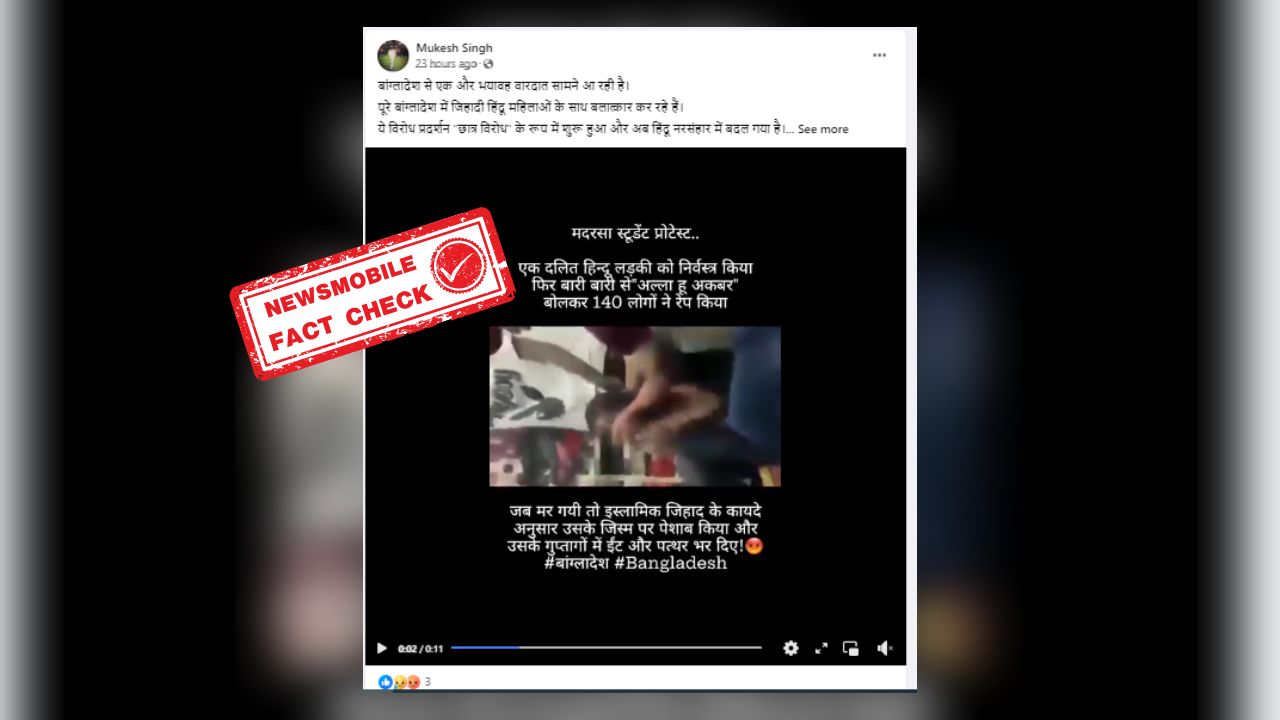 बांग्लादेश में हुए तख्तापलट के बाद सोशल मीडिया पर कई वीडियो वायरल हो रहे हैं। कहीं हिंसा तो कही लूटपाट के सड़कों वीडियो सोशल मीडिया पर बांग्लादेश के नाम से परोसे जा रहे हैं। इसी क्रम में एक व्यक्ति के साथ कुछ लोगों द्वारा किये जा रहे सामूहिक दुष्कर्म का वीडियो भी खूब शेयर किया जा रहा है।