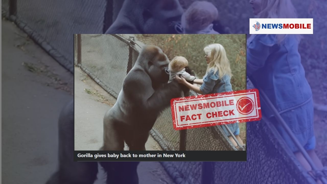 सोशल मीडिया पर एक वीडियो वायरल हो रहा है जिसमें एक गोरिल्ला एक बच्चे को उसकी मां को सौंप रहा है. कई यूजर्स इसे शेयर और कमेंट कर रहे हैं. चलिए जानते हैं कि आखिर इस वीडियो में कितनी सच्चाई है.