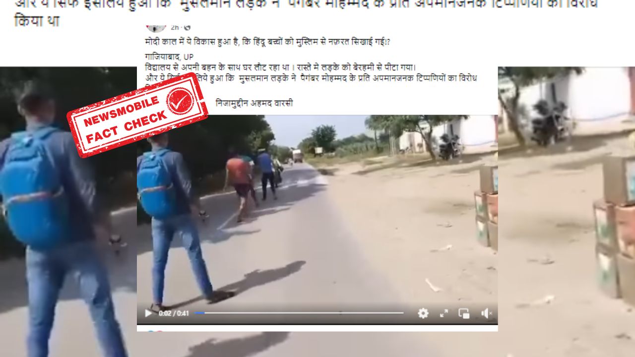 सोशल मीडिया पर एक वीडियो तेजी से वायरल हो रहा है। वीडियो में कुछ लोगों एक बाइक सवार युवक को बेरहमी से पीटते हुए नजर आ रहे हैं। इसी वीडियो को सोशल मीडिया पर शेयर कर दावा किया जा रहा है कि कुछ हिंदी समुदाय के लोगों ने एक बाइक सवार दूसरे समुदाय के युवक को इसलिए पीटा क्योंकि उसने पैगम्बर मोहम्मद को लेकर अपमानजनक टिप्पणियों का विरोध किया था।