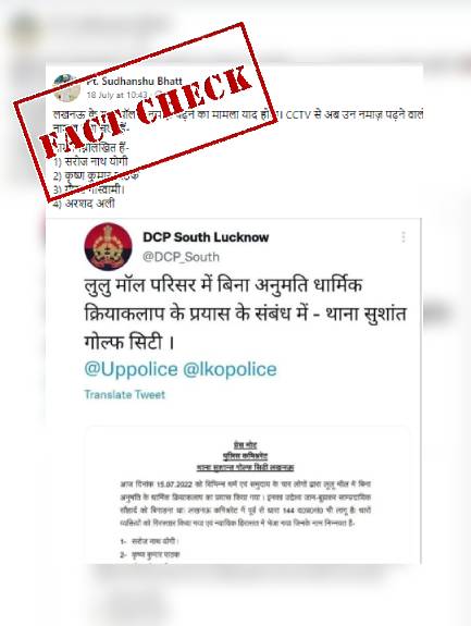 फैक्ट चेक: क्या लखनऊ पुलिस ने कहा कि लखनऊ के लुलु मॉल में नामज पढ़ने वाले युवक हिन्दू हैं? पढ़ें वायरल दावे का सच