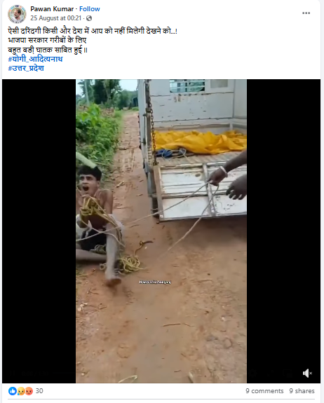 फेसबुक पर वायरल वीडियो को शेयर कर हिंदी भाषा के कैप्शन में लिखा गया है कि “ऐसी दरिंदगी किसी और देश में आप को नहीं मिलेगी देखने को…! भाजपा सरकार गरीबों के लिए बहुत बडी़ घातक साबित हुई ll #योगी_आदित्यनाथ  #उत्तर_प्रदेश